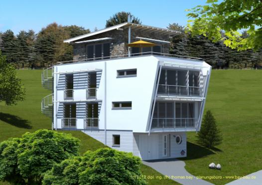 Planung für ein Wohnhaus mit ELW auf einem engen Hanggrundstück